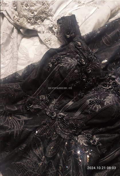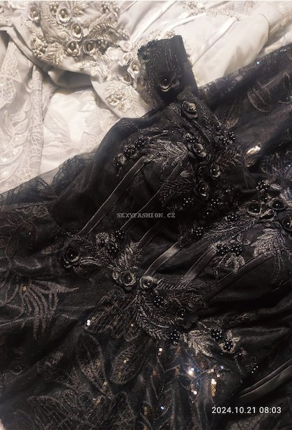 Donna Bridal elegantní plesové šaty s 3D květinkami a originální krásnou sukní Černá Velikost 32 kód 417