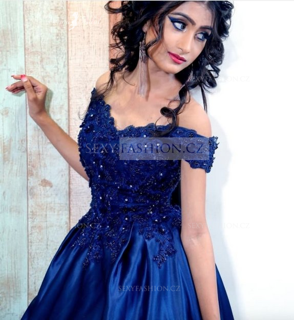 Donna Bridal luxusní společenské a večerní šaty + SPODNICE ZDARMA Modrá námořnická Velikost 34 kod 348
