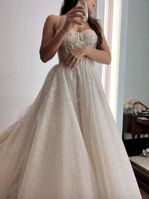 Donna Bridal luxusní třpytivé korzetové svatební šaty s vlečkou Ivory Velikost 32 kód 537