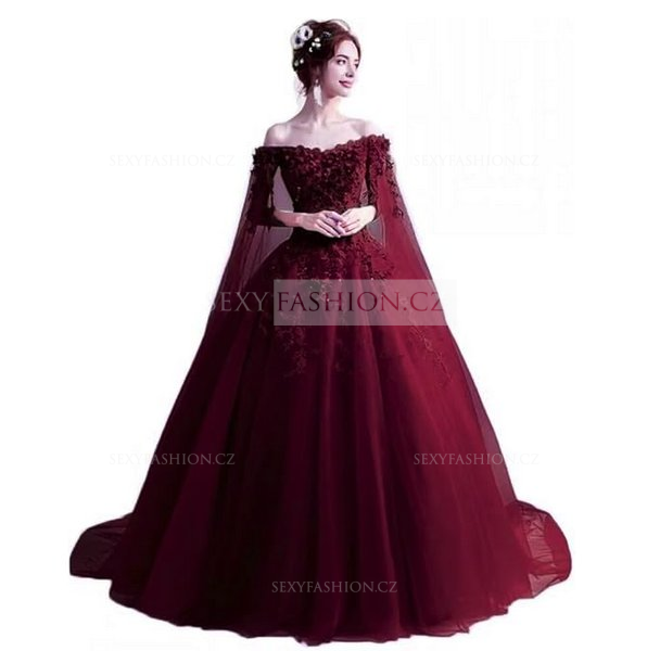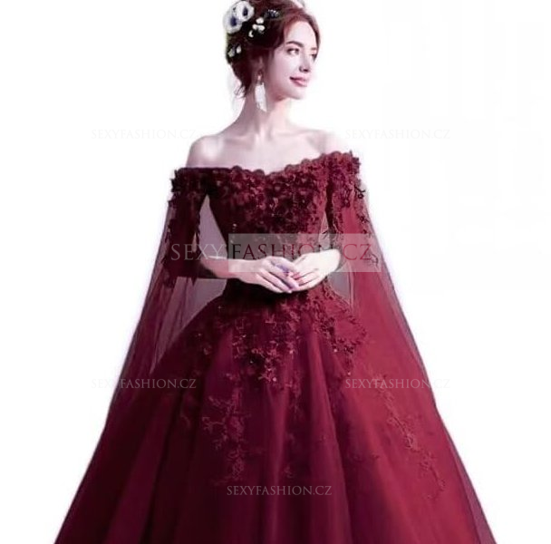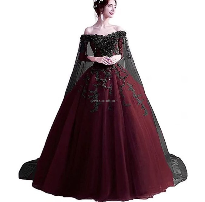 Donna Bridal originální společenské šaty s dlouhými rukávy cca 2,25 m dlouhé + SPODNICE ZDARMA Červená Velikost 30 kód 264