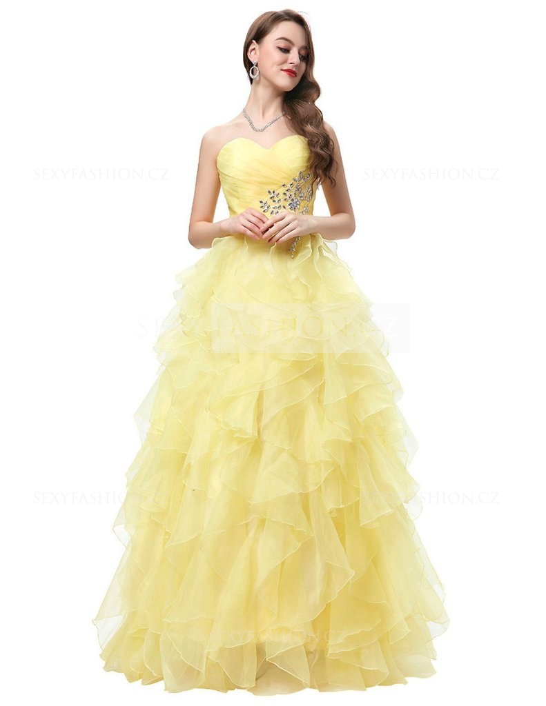 Donna Bridal plesové a večerní šaty s bohatě volánkovou sukní Žlutá Velikost 32 kod 340