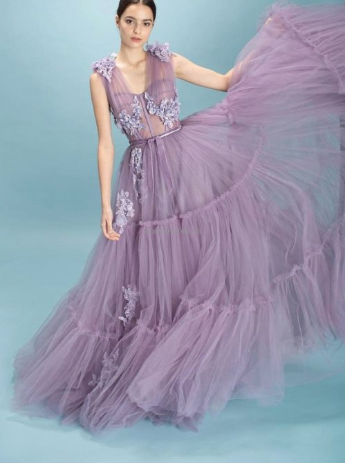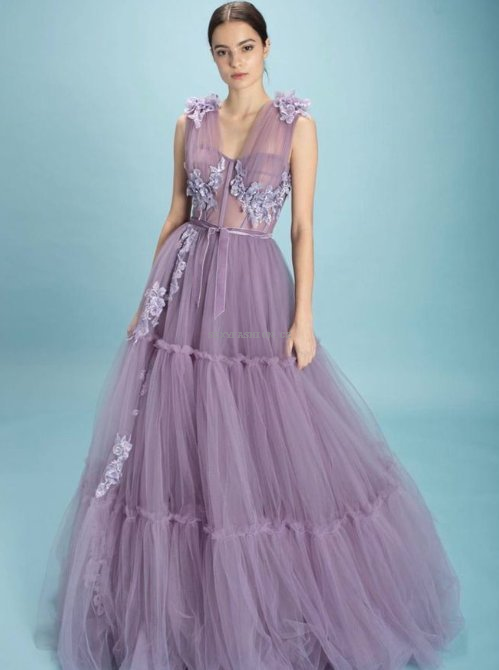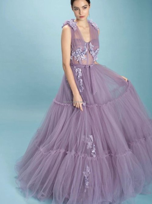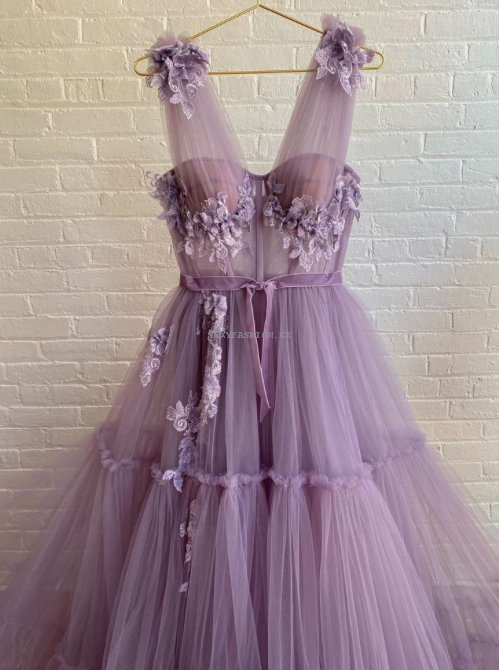 Donna Bridal romantické šaty s korzetovým živůtkem a 3D květovanou aplikací na ramínkách Fialová světlá Velikost 32 kód 243