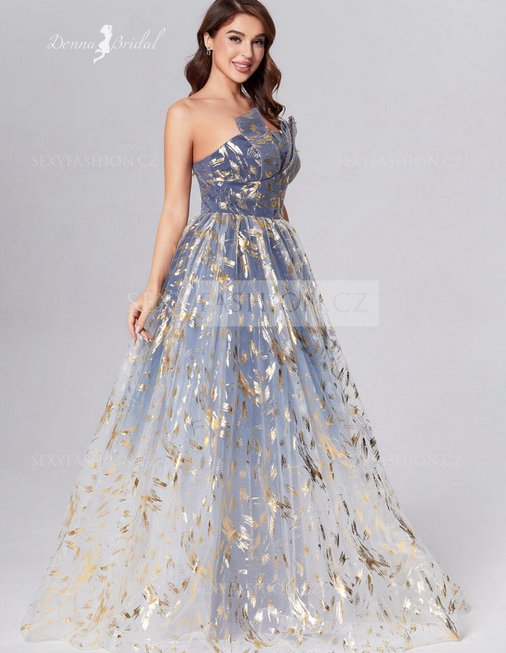 Donna Bridal společenské šaty princeznovského střihu v modré se zlatým potiskem Mix barev - stejná jako na fotografii Velikost 36 kód 567